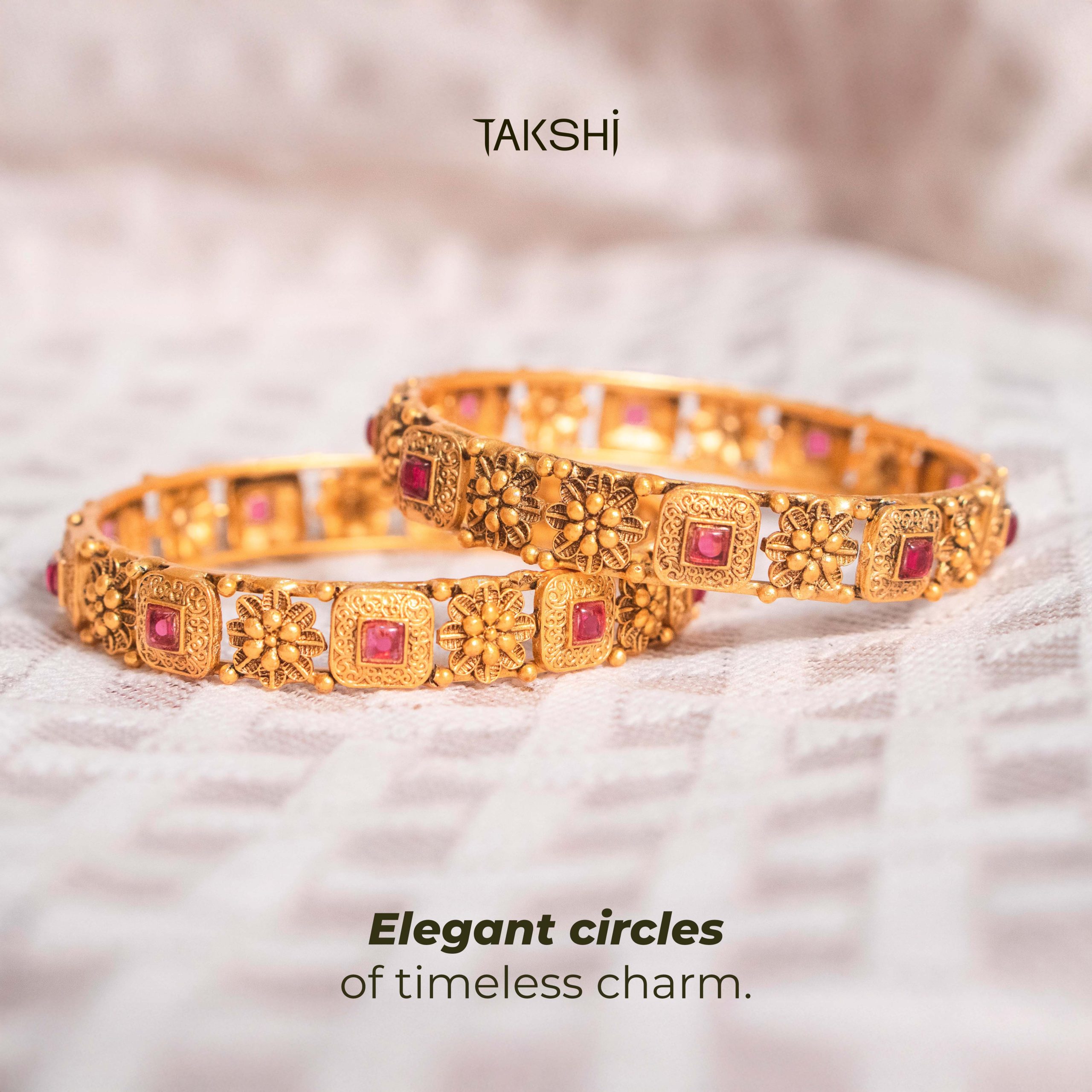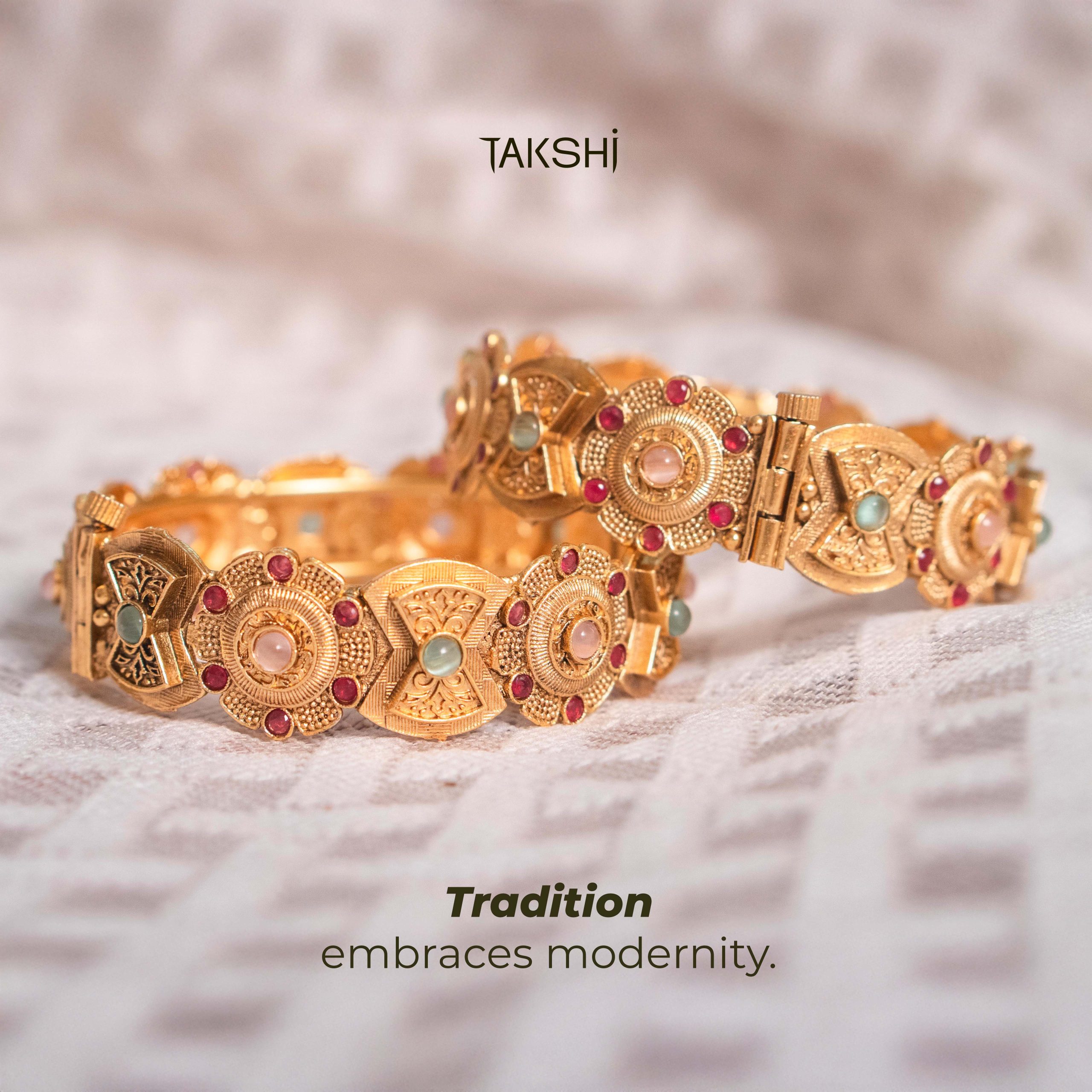 Gold Jumuka with red stones